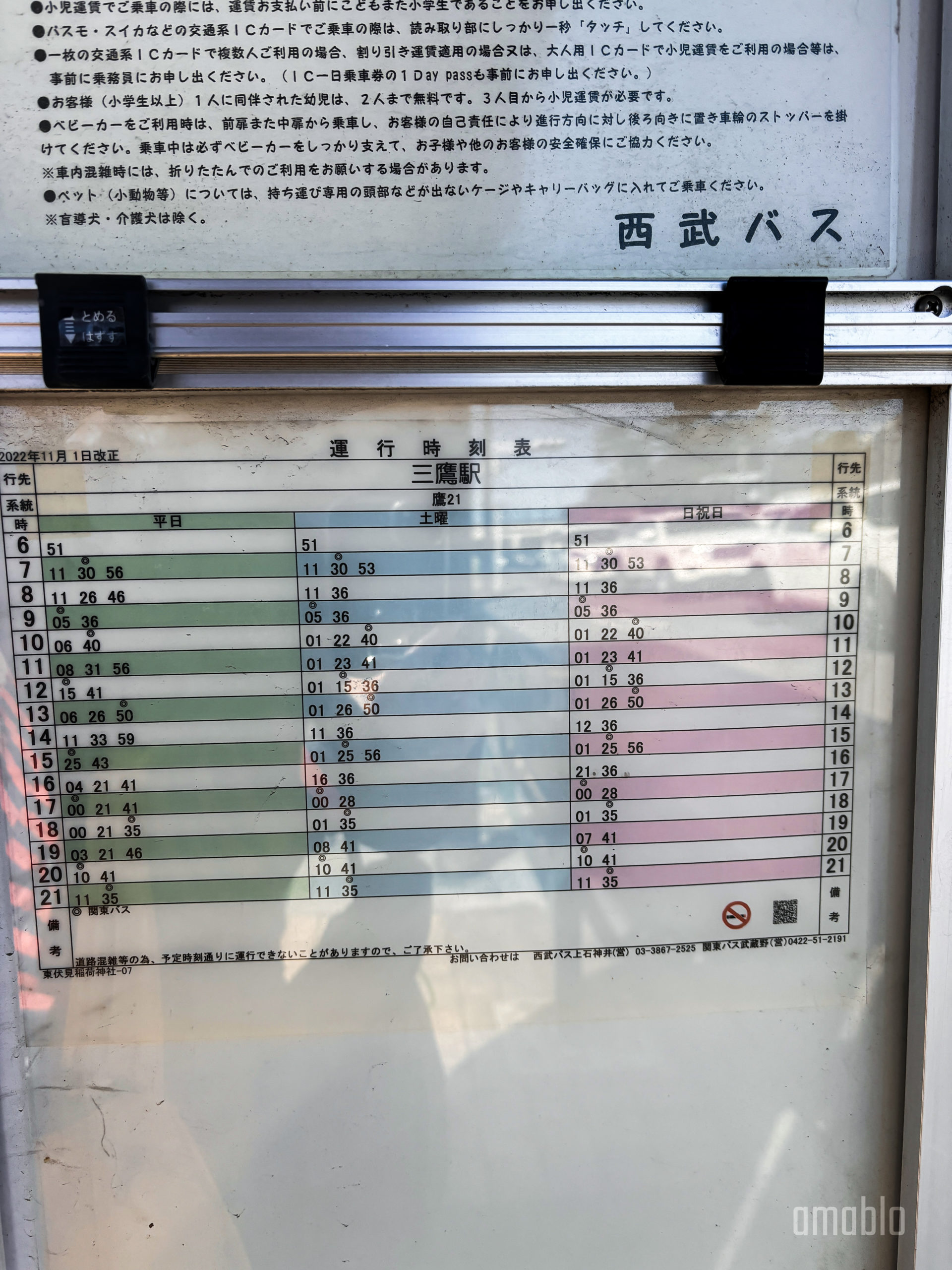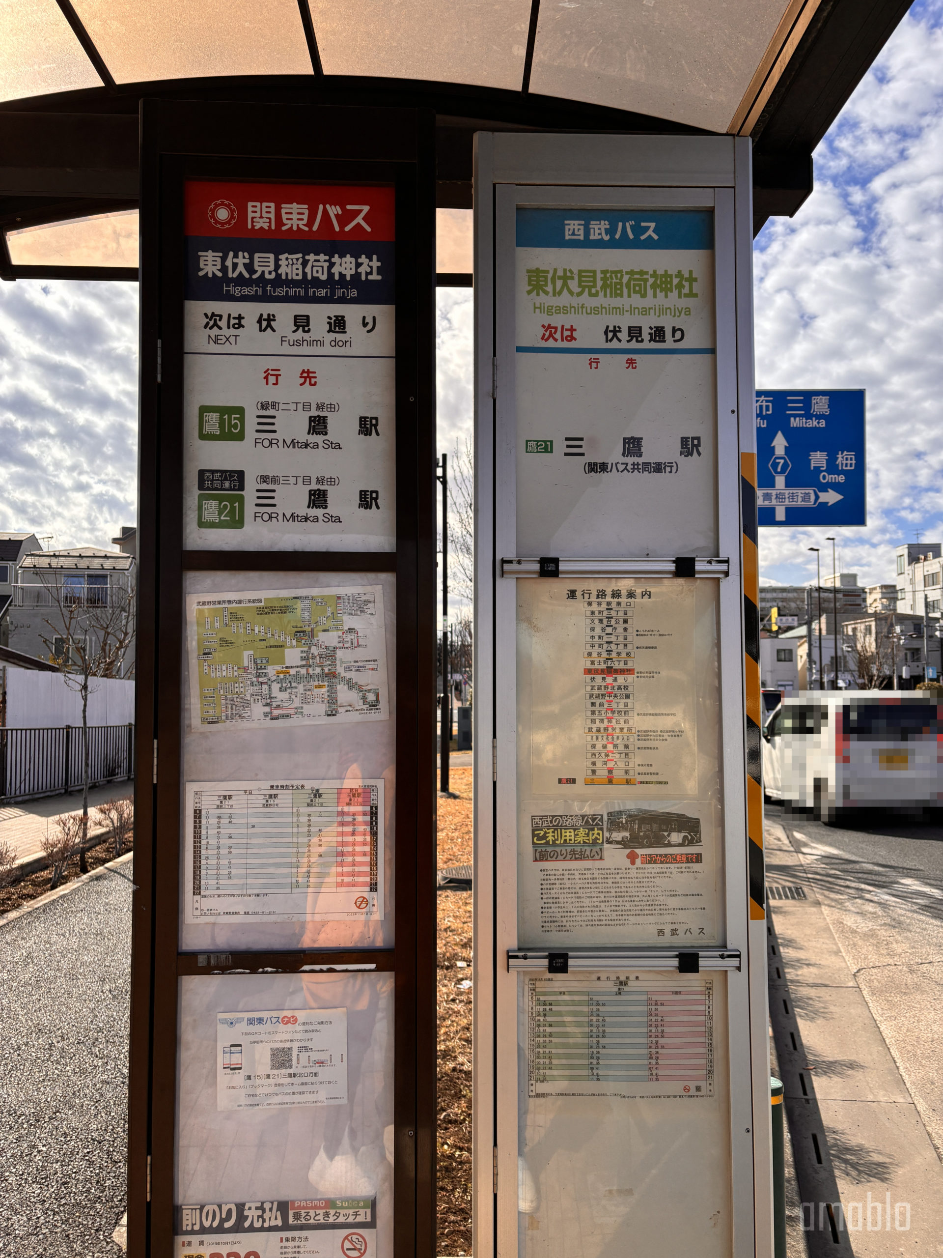 行きと同じバス停に戻って、三鷹駅行[鷹21]に乗車。