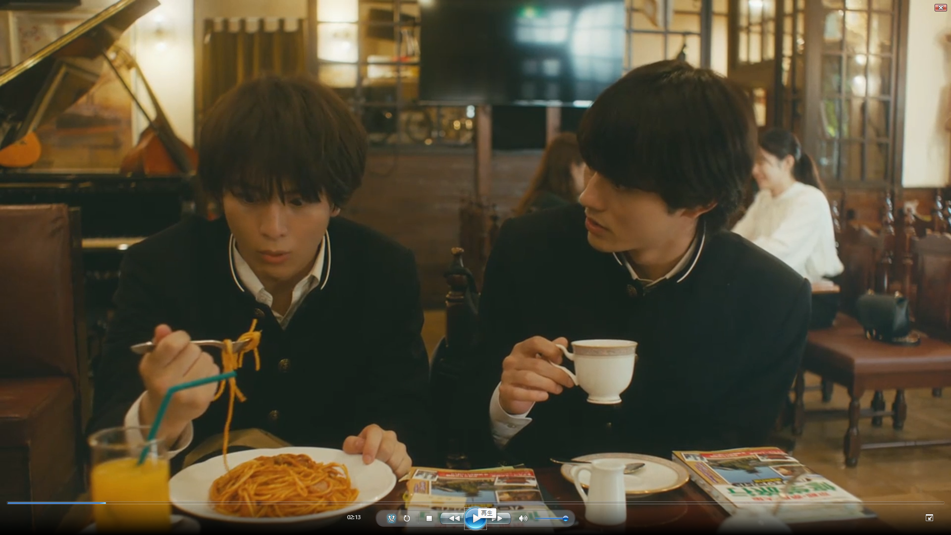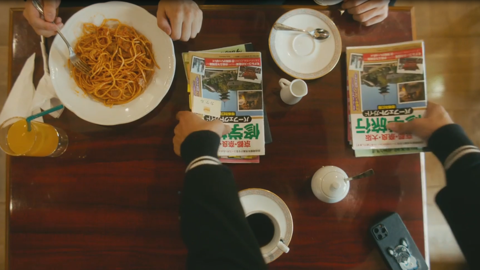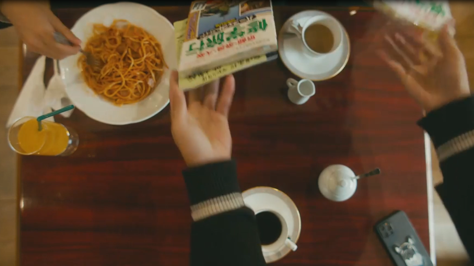 - オレンジジュースは丸ごと、グラス/ストローまで美術さんの持ち込み