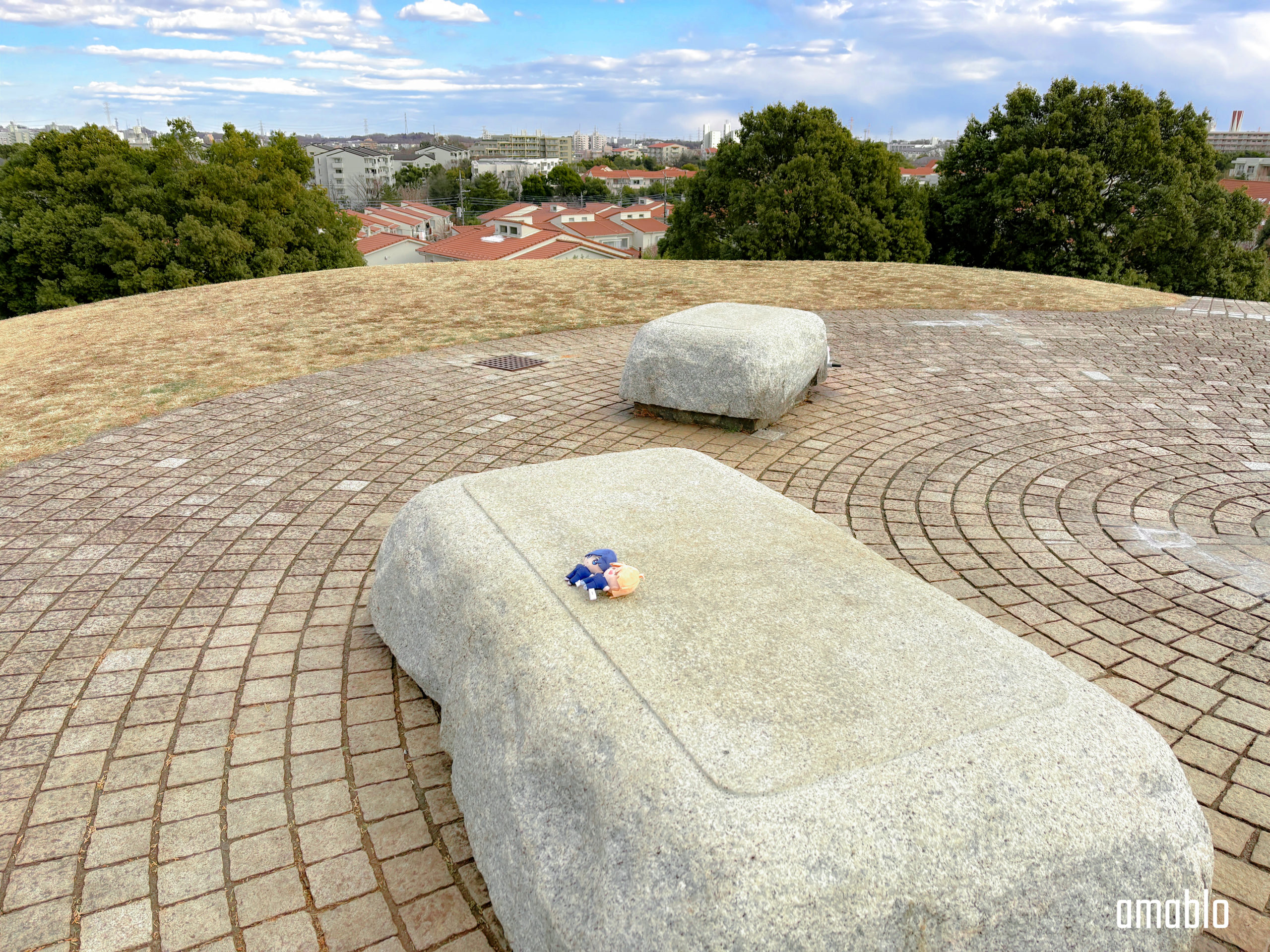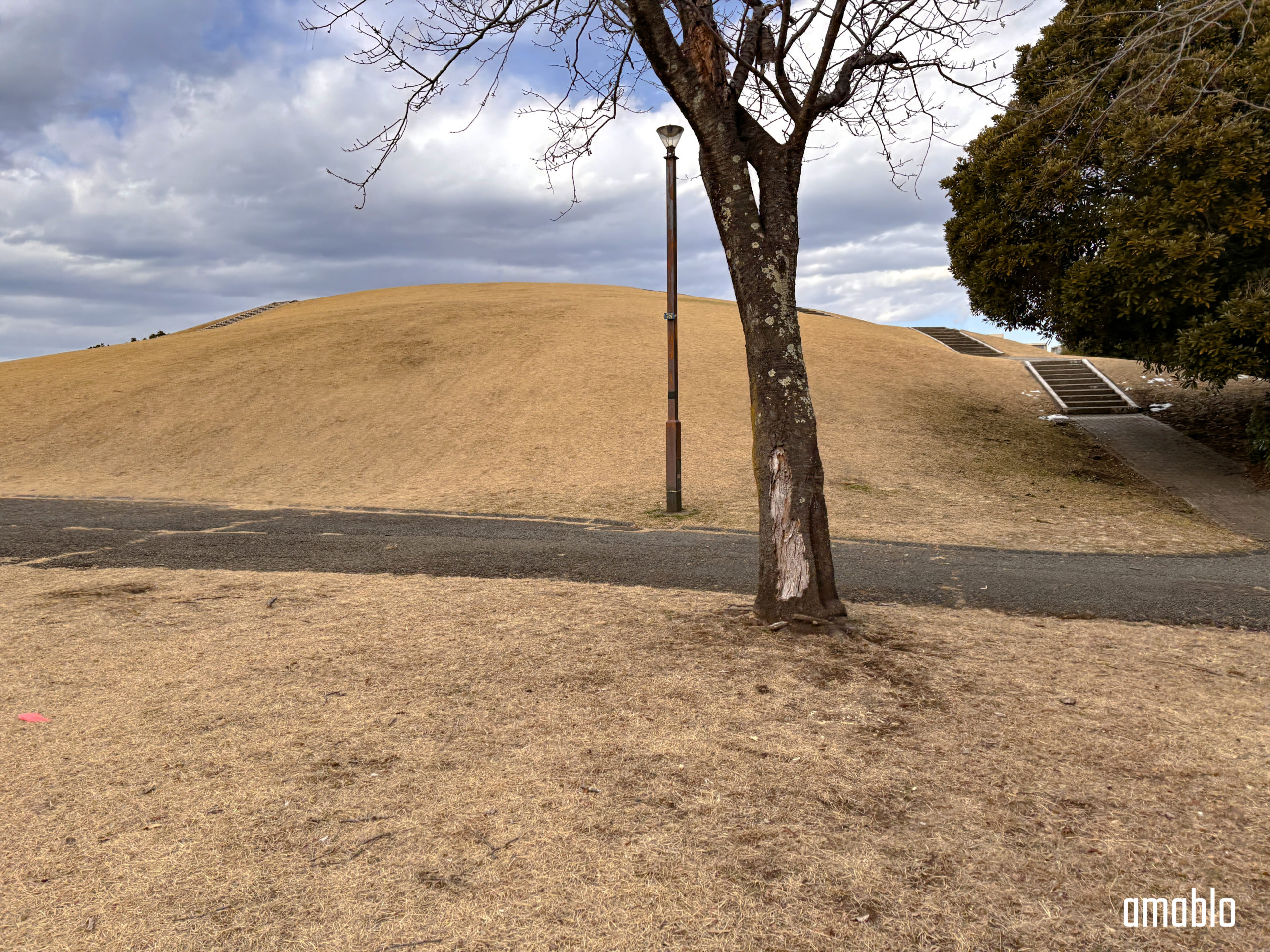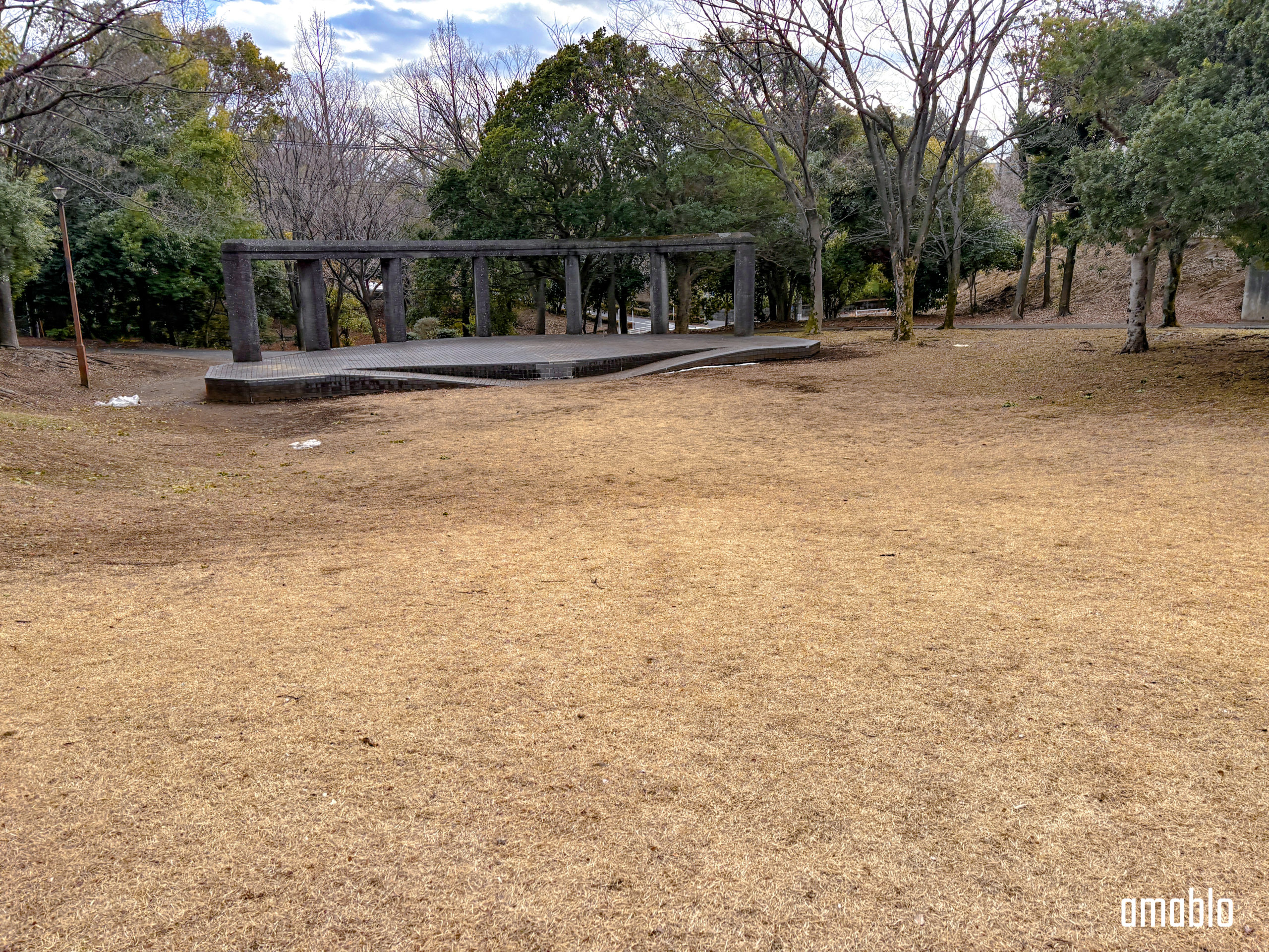 反対車線に渡って、バス進行方向に50mすすむ→右手に公園入口(階段)あり